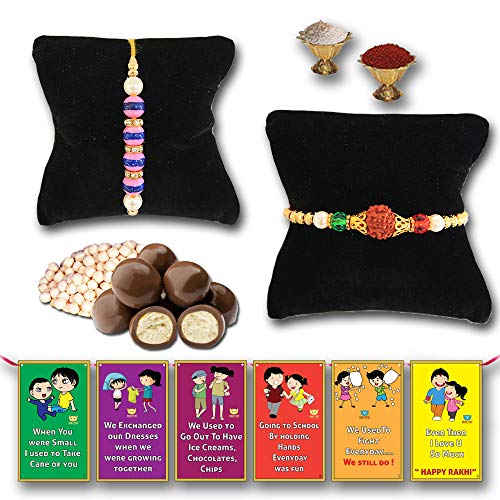 Elegant beautiful rahi set veera rakhi blessings for brother. Blessings of his happiness and long life of brother best rakhi for brother unique design rakhi designer rakhi for brother rakshabandhan gift for brother. Free chocolate coated butterscotch nuts or rice crispy.