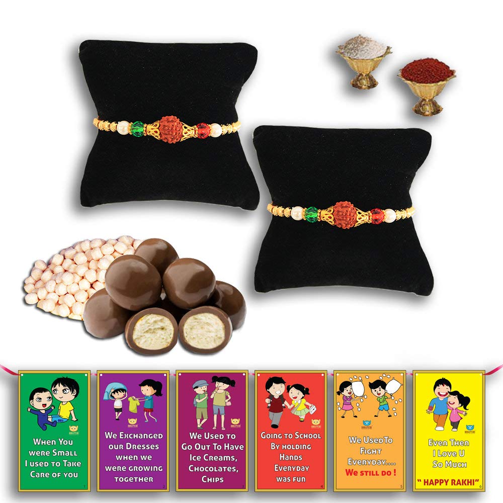 Elegant beautiful rahi set veera rakhi blessings for brother. Blessings of his happiness and long life of brother best rakhi for brother unique design rakhi designer rakhi for brother rakshabandhan gift for brother. Free chocolate coated butterscotch nuts or rice crispy.