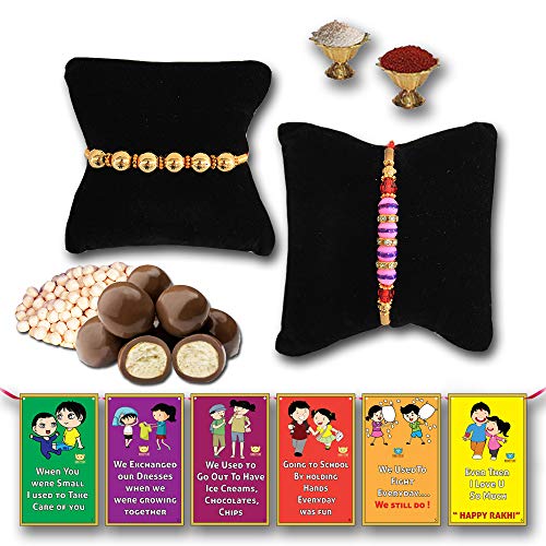 Elegant beautiful rahi set veera rakhi blessings for brother. Blessings of his happiness and long life of brother best rakhi for brother unique design rakhi designer rakhi for brother rakshabandhan gift for brother. Free chocolate coated butterscotch nuts or rice crispy.