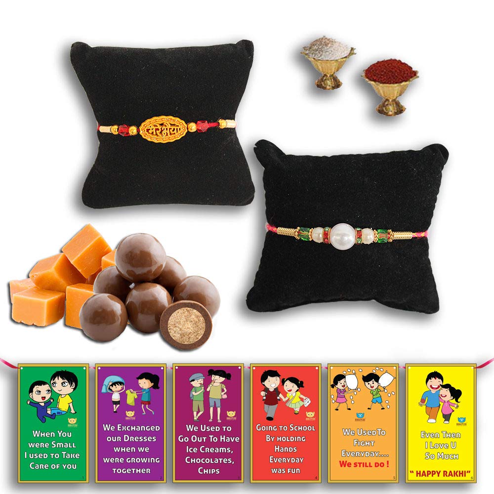 • FREE Dark Chocolate Coated Butterscotch Nuts/Crispy - 50g. Beautiful Rakhi for best Brother. Value for Money Combo