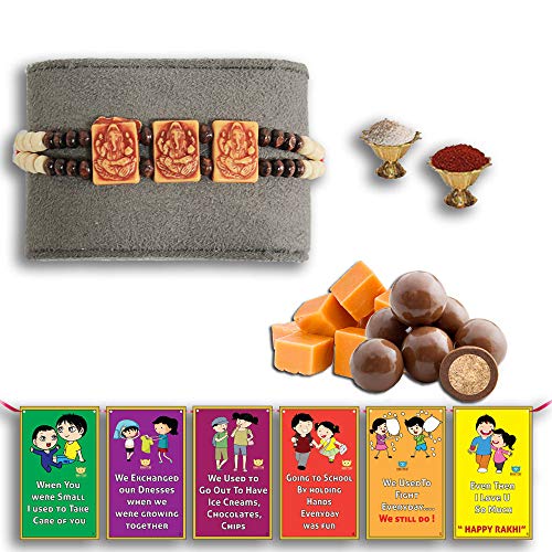 Elegant beautiful rahi set veera rakhi blessings for brother. Blessings of his happiness and long life of brother best rakhi for brother unique design rakhi designer rakhi for brother rakshabandhan gift for brother. Free chocolate coated butterscotch nuts or rice crispy.
