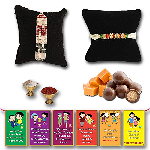 Elegant beautiful rahi set veera rakhi blessings for brother. Blessings of his happiness and long life of brother best rakhi for brother unique design rakhi designer rakhi for brother rakshabandhan gift for brother. Free chocolate coated butterscotch nuts or rice crispy.