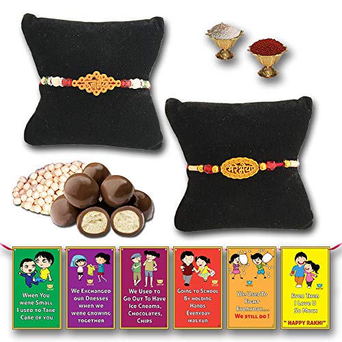 Elegant beautiful rahi set veera rakhi blessings for brother. Blessings of his happiness and long life of brother best rakhi for brother unique design rakhi designer rakhi for brother rakshabandhan gift for brother. Free chocolate coated butterscotch nuts or rice crispy.