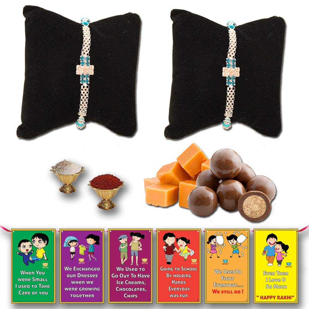 Elegant beautiful rahi set veera rakhi blessings for brother. Blessings of his happiness and long life of brother best rakhi for brother unique design rakhi designer rakhi for brother rakshabandhan gift for brother. Free chocolate coated butterscotch nuts or rice crispy.