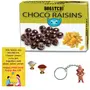 BOGATCHI Chocolate Coated Raisins 200g + Free Bhai Dooj Greeting Card + Beautiful Ganesha Key Chain + Roli Chawal Free with Bhai Dooj Gift Hamper for Brother