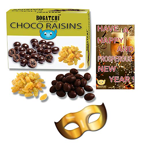 BOGATCHI Chocolate Coated Raisins New Year Special Rich Dry Fruit Collection Gift 200g + Free Happy New Year Card+ Party Mask