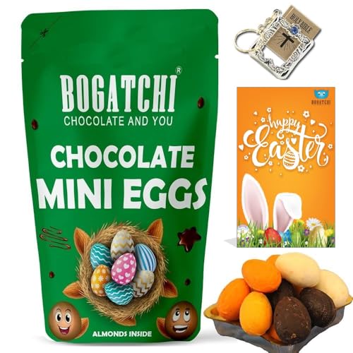 BOGATCHI Chocolate Easter Eggs Filled with Almonds 200g + Free Happy Easter Card + Holy Bible Key Chain