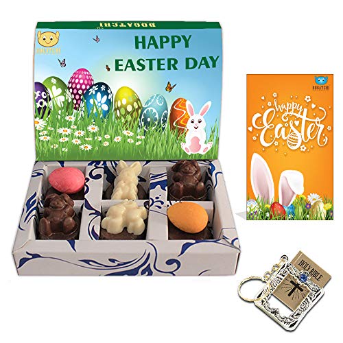 BOGATCHI Chocolate Easter Set Eggs and Bunnies + Holy Bible Key Chain + Free Happy Easter Card