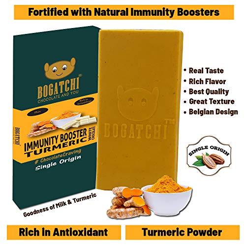 Bogatchi turmeric chocolate bar contains turmeric powder and milk with amazing taste. According to Ayurveda turmeric is the natural immunity booster. Lots of people in India still drink turmeric (haldi) milk on regular basis to build the internal strength of the immune system. Very good for kids as they can eat it like a regular chocolate. Helps fight against diseases and infections.