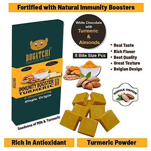 BOGATCHI Chocolate for Immunity | Turmeric Milk White Chocolate Bites | Almonds 8 Pcs