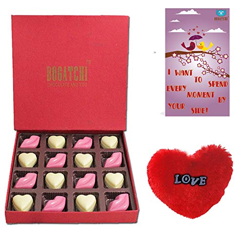 BOGATCHI Chocolate Hearts and Kisses Valentine Gifts for Girlfriend- Boyfriend- Wife - Husband 16pcs + Free Valentines Day and Fur Heart