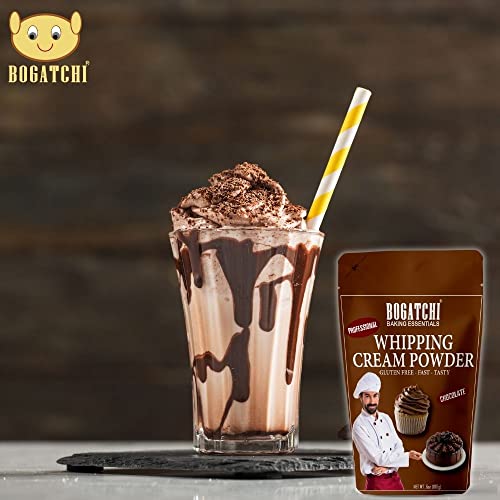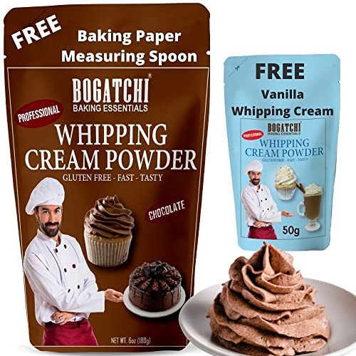 BOGATCHI Chocolate whipping cream for cake chocolate whipping cream powder whipped cream chocolate flavor 180g + Free Vanilla Whipping Cream 50g Measuring Spoon and Baking paper