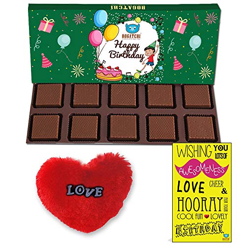 Bogatchi birthday's day gift combo- birthday chocolates with card birthday chocolates with teddy birthday chocolates gift hamper birthday gift for her birthday gift for him. Colour of the teddy soft toy (if shown) may change depending upon availability. Size of the teddy (if shown) is 5 inches (approx.). Size of fur heart (if shown) is 4.5 inches x 3.5 inches. Rose (if shown) is not natural. Size of card is 3 inches x 5 inches