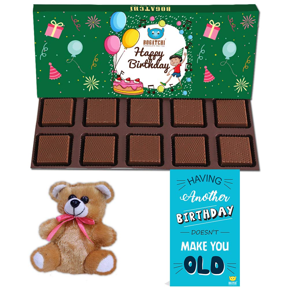 BOGATCHI Chocolates Happy Birthday Heart Chocolates Box10 pcs + Free Happy Birthday Card + Free Teddy