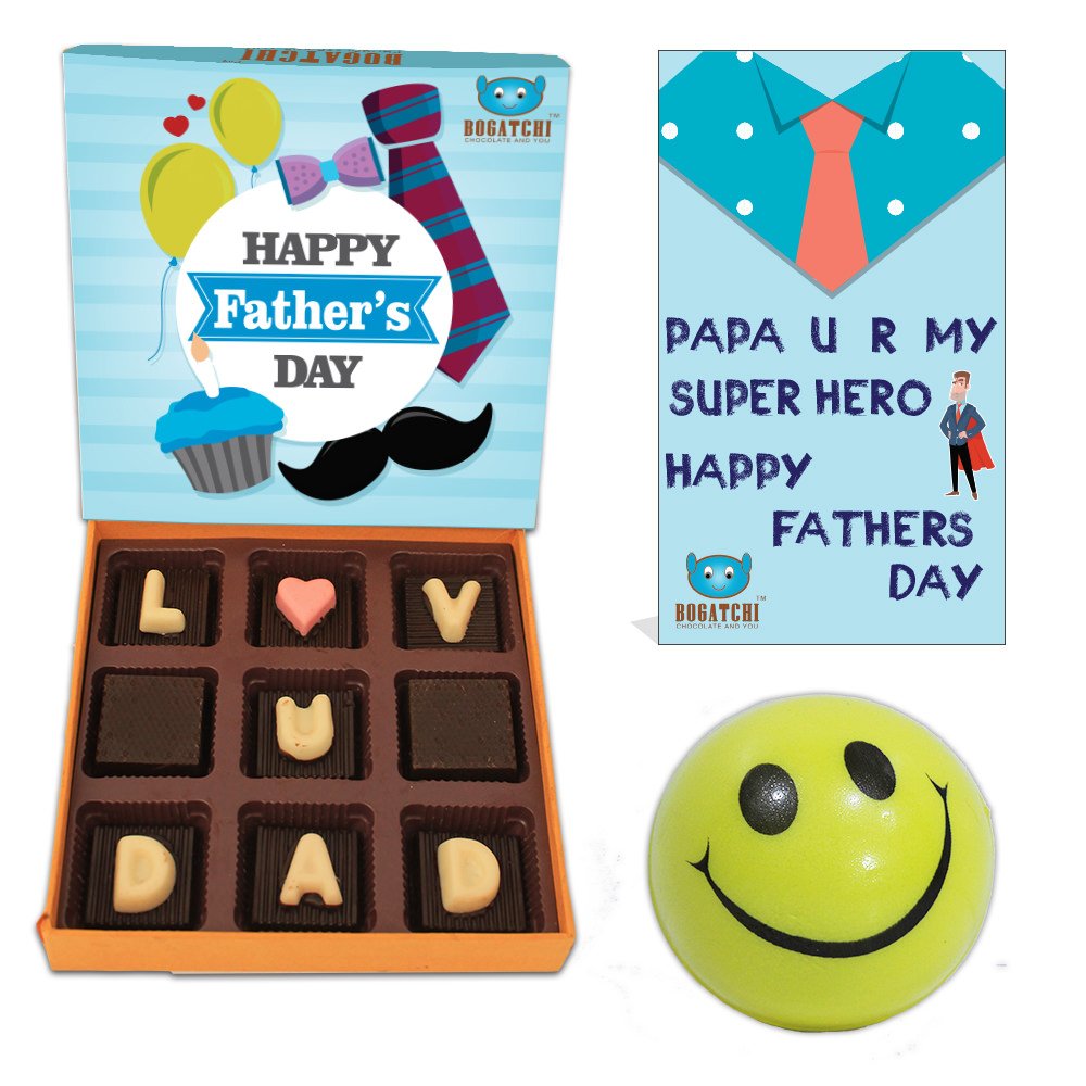 BOGATCHI Chocolates Happy Father's Day Theme Gift Box Love U DAD Chocolate Box Special Fathers Day Gift 9 pcs + Free - Fathers Day Greeting Card + Smiley Ball