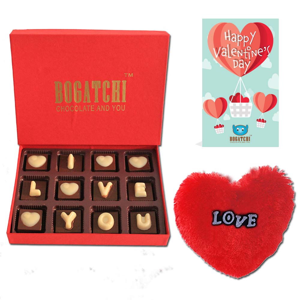 BOGATCHI Chocolates Valentine Day Gift for Boyfriend Love Box 120g + Free V-Day Card + Free Fur Heart