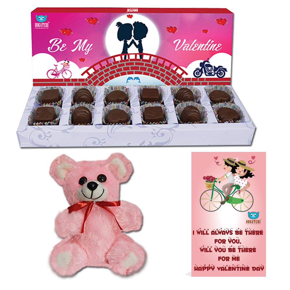 BOGATCHI Chocolates Valentine Day Gift for Husband 12pcs + Free V-Day Card + Free Teddy