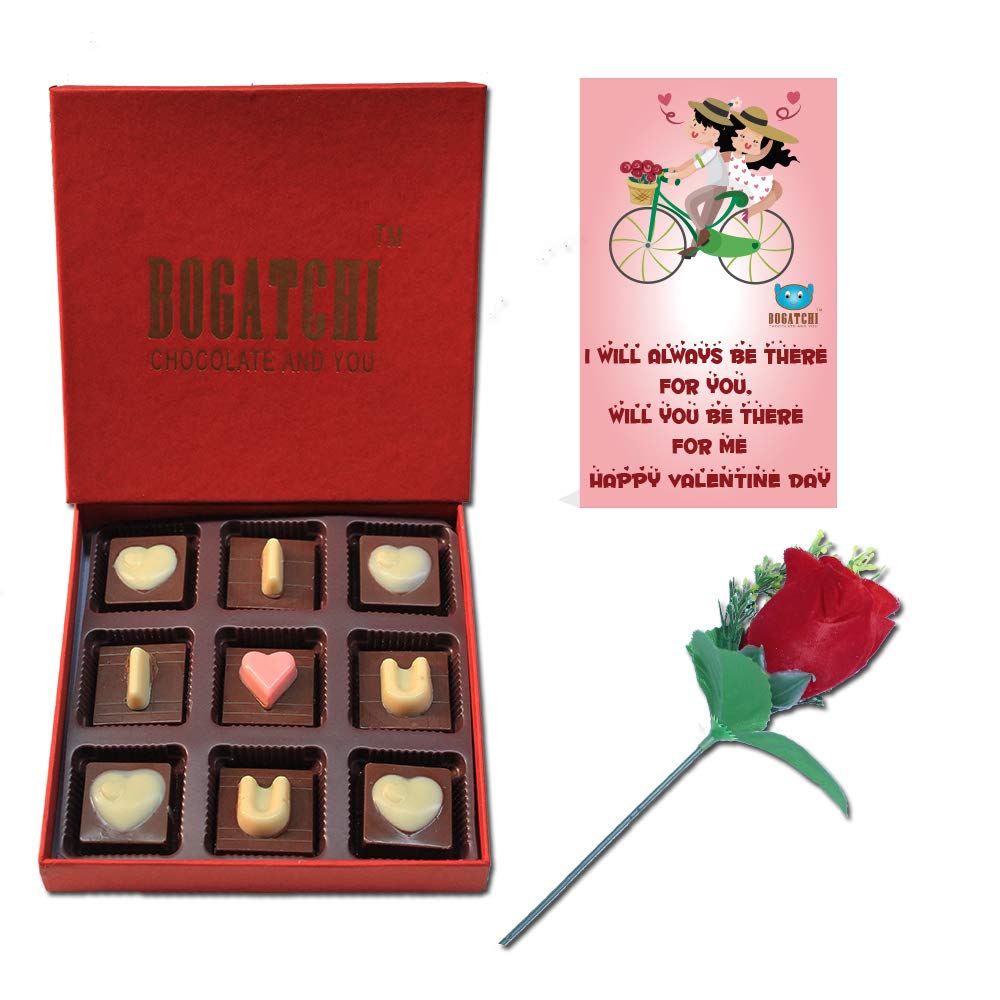 BOGATCHI Chocolates Valentine Day Gift for Wife Love Box 90g + Free V-Day Card + Free Rose