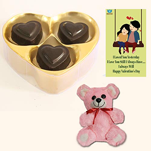BOGATCHI Chocolates Valentines Day Gift for Boyfriend 3 Choco Heart Box + Free V-Day Card + Free Teddy