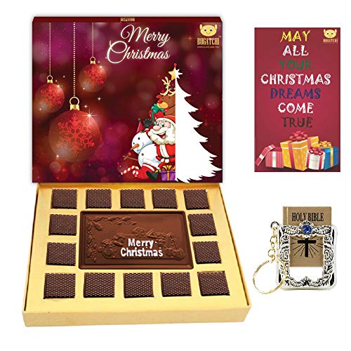BOGATCHI Christmas Gift Christmas Chocolates Dark Chocolates Box 15 pcs + Free Merry Xmas Card + Free Holy Bible Keychain