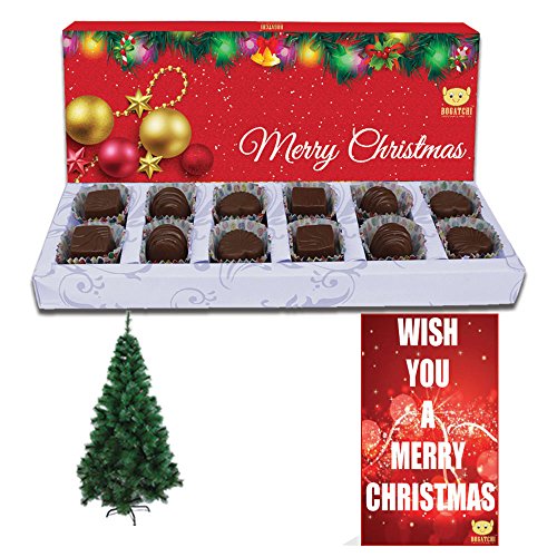 BOGATCHI Christmas Gifts Merry Christmas Chocolates Premium Xmas Gift Box 12 pcs Free Xmas Tree and Free Merry Christmas Greetings Card