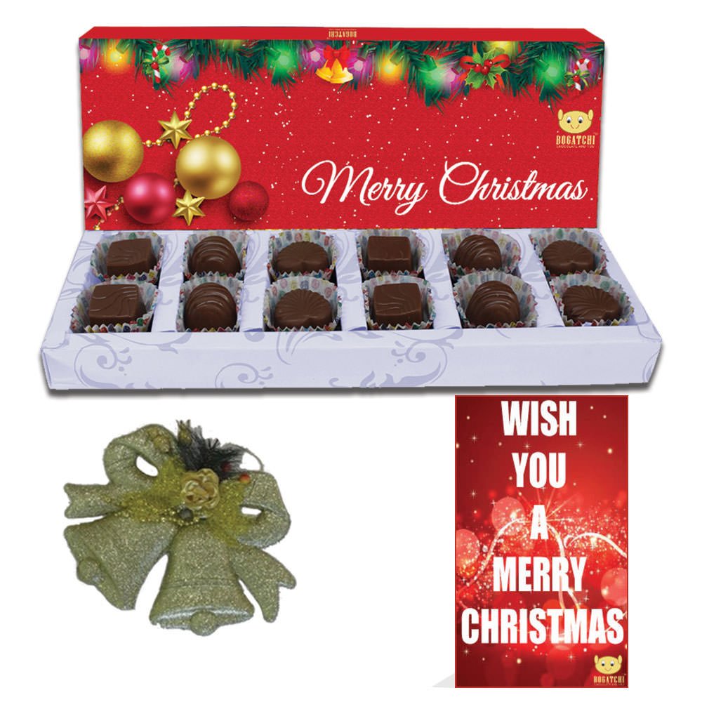 Bogatchi Christmas Gifts Merry Christmas Chocolates Premium Xmas Gift Box 12 Pcs Xmas Bells and Greetings Card