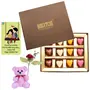 Bogatchi Colorful Hearts Chocolate (White (Milk (Pink and Mango) 12 Pcs) Teddy Soft Toy Red Rose & Greeting Card
