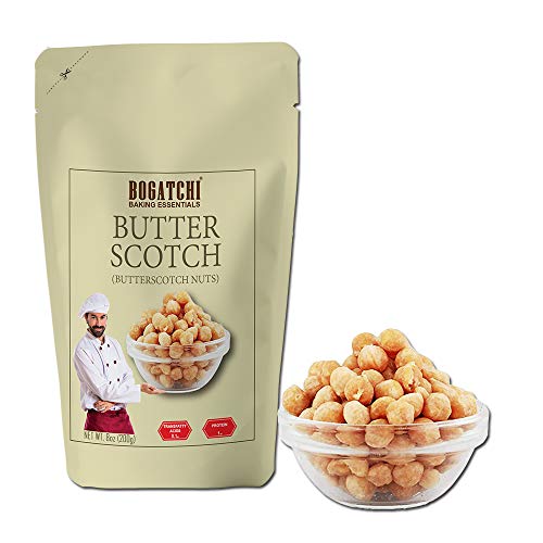 BOGATCHI Butterscotch nuts are made of realy Cashew nuts. These are big in size 6 MM perfect for making cake ice creams shakes cookies muffins and many more things. Use them for decorations or just for casual crunchy bites. The BOGATCHI Butterscotch nuts are VEGAN and GLUTEN FREE
