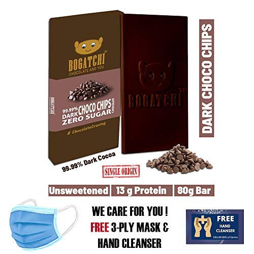 BOGATCHI Dark Chocolate 99%| Dark CHOCOCHIPS| Real Cocoa Intense Dark Chocolate 80 gm