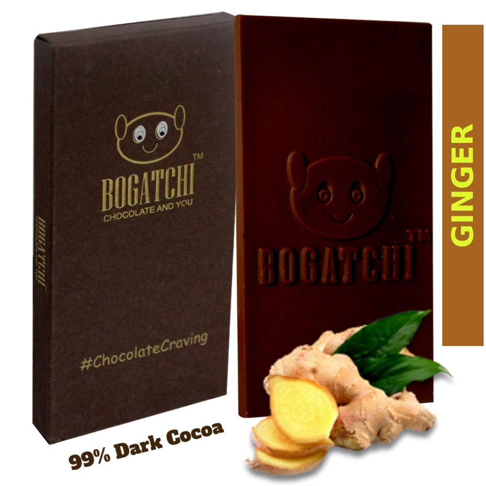 BOGATCHI Dark Chocolate 99%| Ginger | Real Cocoa Intense Dark Chocolate 80 gm