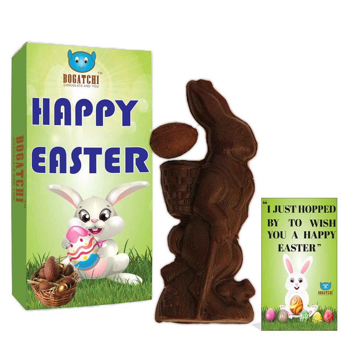 BOGATCHI Dark Chocolate Big Bunny with 1 Easter Egg - Dark Chocolate + Free - Greeting Card for Happy Easter