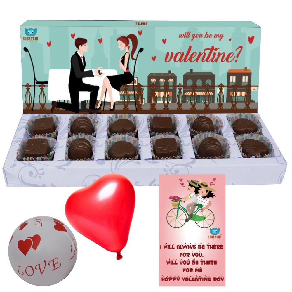 Bogatchi Dark Chocolate Box (12 Chocos) Love and Heart Shape Balloons & Greeting Card