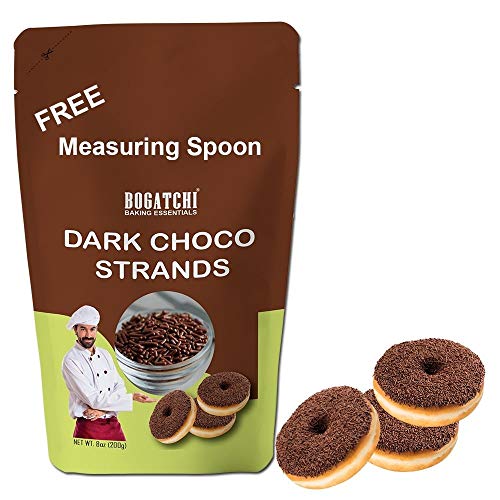 HomeGrocerySweetsChocolatesBOGATCHI Dark Chocolate Strands Chocolate Sprinkles for Baking and Decoration Dark Chocolate Vermicelli Sprinkles Vegan and Gluten Free 200g with Free Measuring Spoon