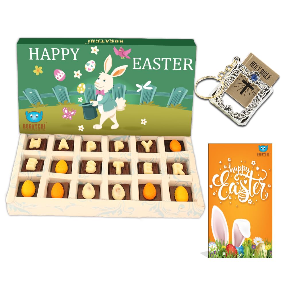 BOGATCHI Easter Chocolate Theme Box 24 pcs+ Holy Bible Key Chain + Free Happy Easter Card