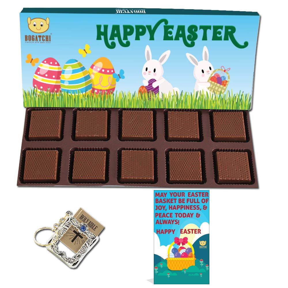 BOGATCHI Easter Chocolates Gift Box 10pcs + Free Happy Easter Card + Holy Bible Key Chain