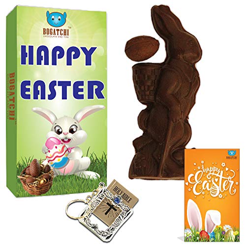 BOGATCHI Easter Special Dark Chocolate Bunny 1 Almond Easter Eggs + Holy Bible Key Chain + Free Happy Easter Card
