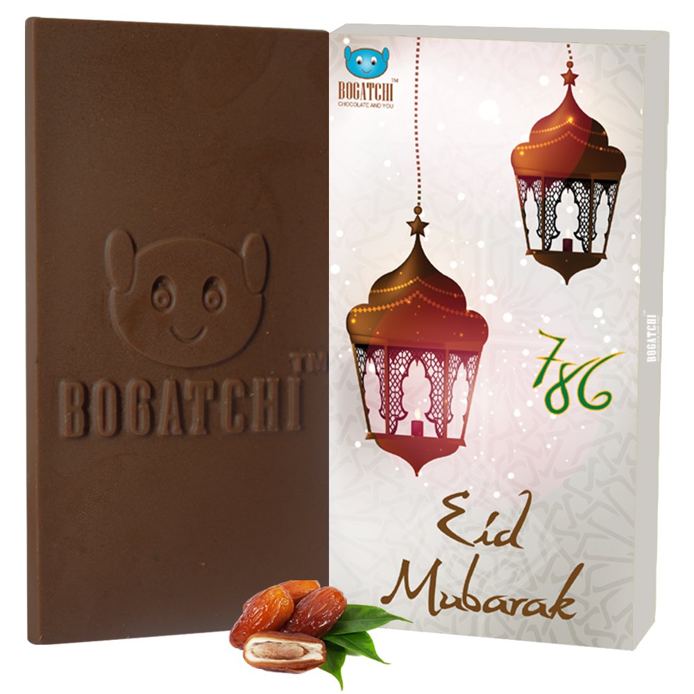 Bogatchi eid Mubarak chocolate bar. Luxurious delicious dark chocolates real treat for true chocolate lovers. Bogatchi chocolates are made up of fine quality cocoa power and rich cocoa butter. The exotic flavours of chocolate are sure to tickle your taste buds. These chocolates are perfect for the any age group who are young at heart. These chocolates are just the right gift for any season. This is an amazing gift to send to your girlfriend boyfriend brother sister or parents. Send these gifts to your near ones and surprise them.