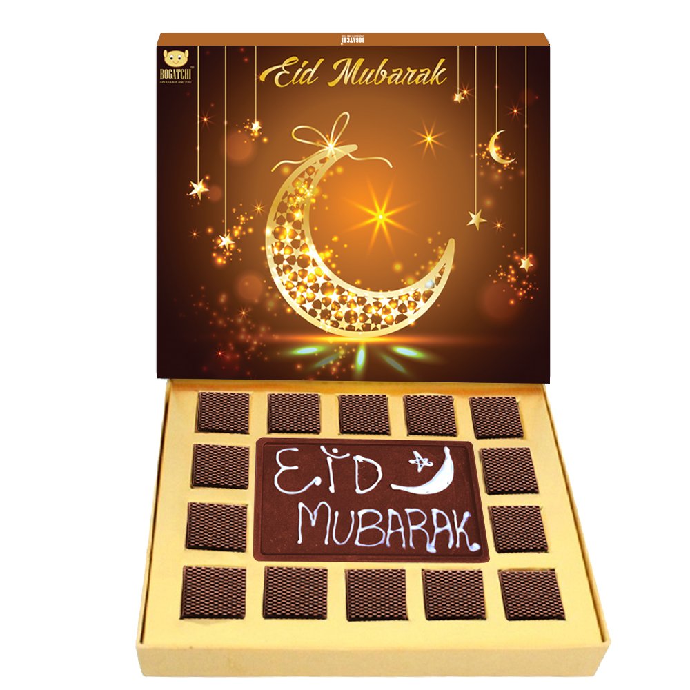 Bogatchi eid Mubarak assorted chocolates. Luxurious delicious dark chocolates real treat for true chocolate lovers. Bogatchi chocolates are made up of fine quality cocoa power and rich cocoa butter. The exotic flavours of chocolate are sure to tickle your taste buds. These chocolates are perfect for the any age group who are young at heart. These chocolates are just the right gift for any season. This is an amazing gift to send to your girlfriend boyfriend brother sister or parents. Send these gifts to your near ones and surprise them.