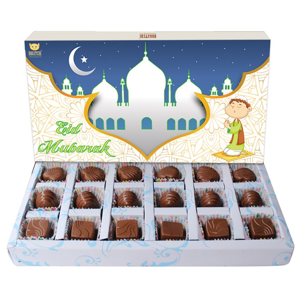 Bogatchi eid Mubarak assorted chocolates. Luxurious delicious dark chocolates real treat for true chocolate lovers. Bogatchi chocolates are made up of fine quality cocoa power and rich cocoa butter. The exotic flavours of chocolate are sure to tickle your taste buds. These chocolates are perfect for the any age group who are young at heart. These chocolates are just the right gift for any season. This is an amazing gift to send to your girlfriend boyfriend brother sister or parents. Send these gifts to your near ones and surprise them.