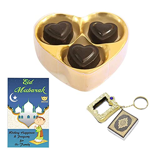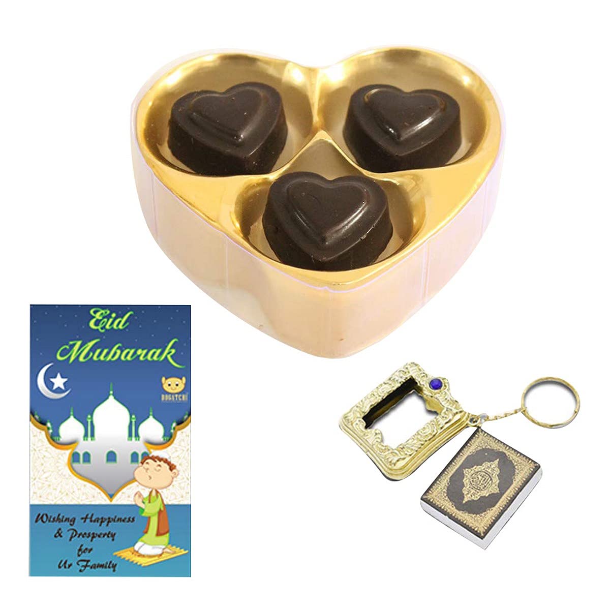 BOGATCHI EID Mubarak Gift Heart Dark Chocolates 3 Pcs + Free EID Mubarak Card + Free Pocket Quran
