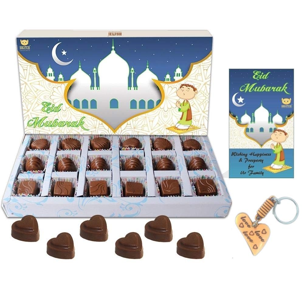 BOGATCHI EID Mubarak Gift Special Chocolate Box 24 pcs + Free EID Mubarak Card + Free Pocket Key Chain