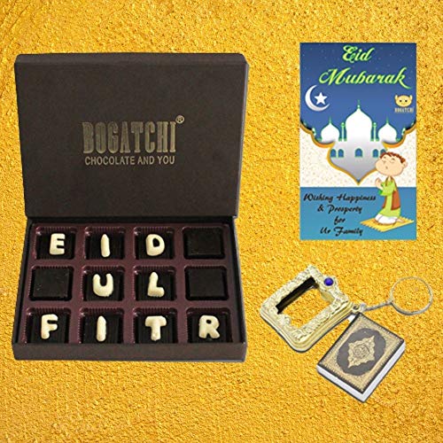 BOGATCHI EID Mubarak Gift Special Dark Chocolate Box Eid UL Fitr 12pcs + FREE Pocket Quran + FREE EID Mubarak Card