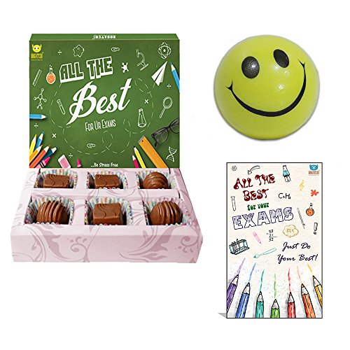 BOGATCHI Exam Day Gift EXAM Special Chocolates EXAM Gift Hamper Exam wishes All the Best Good Lucks 6pieces + FREE -Smiley Ball (to control stress) + FREE Exam Wishes Greeting Card