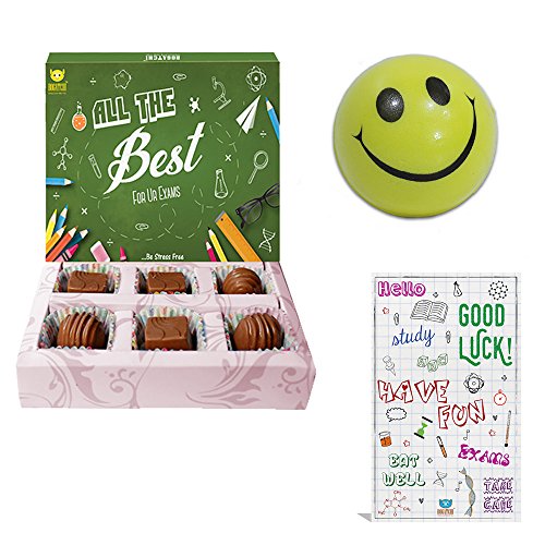 BOGATCHI Exam Day Gift EXAM Special Dark Chocolates EXAM Gift Hamper Exam wishes - All the Best Good Lucks 6pieces + FREE -Smiley Ball (to control stress) + FREE Exam Wishes Greeting Card