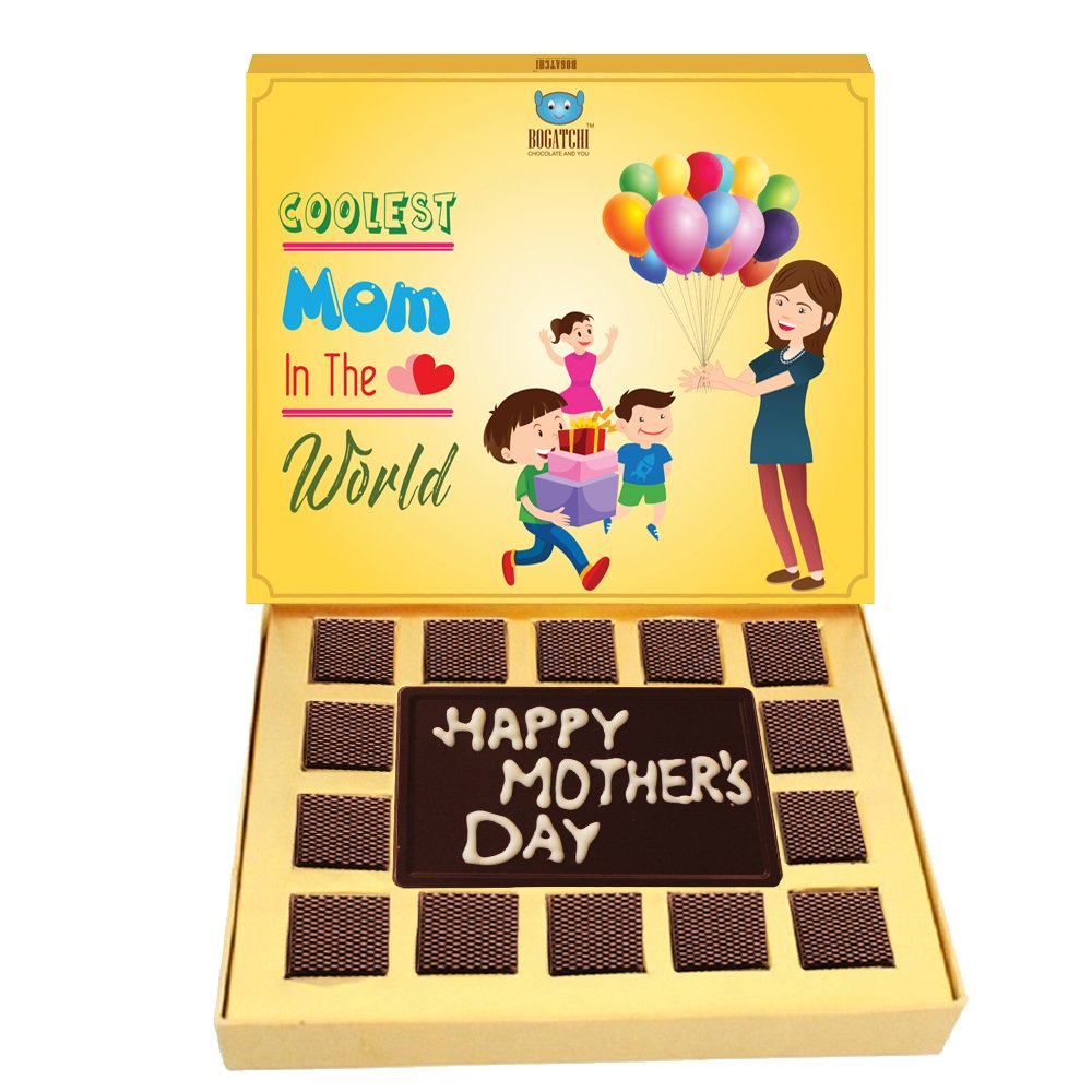 BOGATCHI MOTHERS DAY GIFT CHOCOLATE - Personalized Mother's Day design and dark chocolate bar with 14 Butter Scotch chocolates