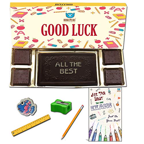 BOGATCHI Good Luck Chocolate Gift for Exams Dark Chocolae Bar + 4pcs Dark Chocolate + Free Good Luck Card + Exam Kit for Kids