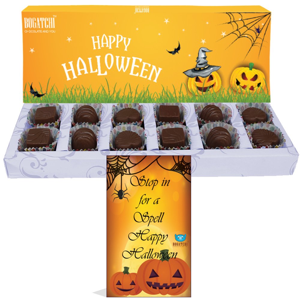 BOGATCHI Halloween Gifts Premium Chocolate Candy Box 12 Pieces Free Halloween Theme Greeting Card