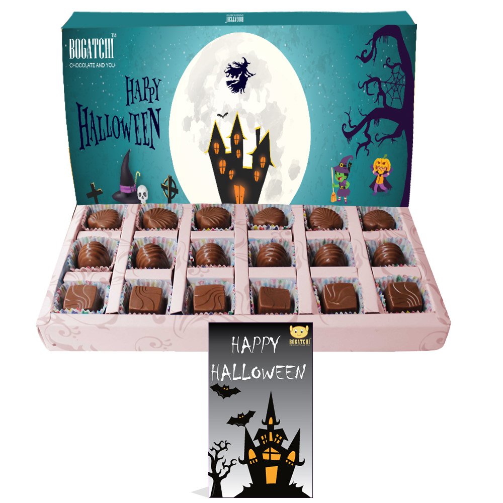 BOGATCHI Halloween Gifts Premium Chocolate Candy Box 18 Pieces Free Halloween Greetings Card
