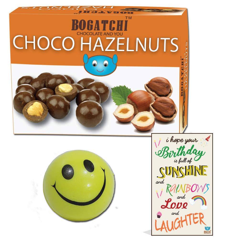 BOGATCHI Happy Birthday Rich Dry Fruit Collection Gift Chocolate Coated Hazelnut 200g + Free Birthday Greeting Card + Free Smiley Ball