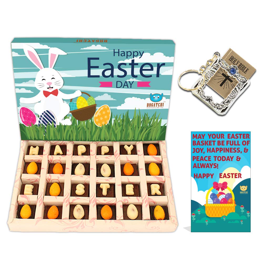 BOGATCHI Happy Easter Chocolate Theme Box 24 pcs+ Holy Bible Key Chain + Free Happy Easter Card